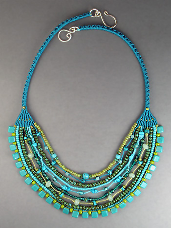This project is included in my book, Micro-Macrame Jewelry, Vol.II. Beads take center stage in this lightweight and versatile necklace. From casual to dressy, it's sure to compliment any outfit. Level -Intermediate/Advanced Note: For the beginning knotter, I recommend my book, "Micro-Macrame Jewelry, Tips & Techniques for Knotting with Beads" or my Online Class Just the Knots. This Tutorial is a digital download (.pdf). After checking out, you will automatically return to a Micro-MacrameJewelry.com page with links to download your Tutorials. You should also receive an email from info@micro-macramejewelry.com with those links. Copyright ©, Joan Babcock Designs. See our Info page for terms of use.