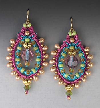 This project is included in my book, Micro-Macrame Jewelry, Vol.II. Ornately beaded bands surrounding serene crystals bring all of the elements together into a balanced and harmonious design. Level -Intermediate/Advanced Note: For the beginning knotter, I recommend my book, "Micro-Macrame Jewelry, Tips & Techniques for Knotting with Beads" or my Online Class Just the Knots. This Tutorial is a digital download (.pdf). After checking out, you will automatically return to a Micro-MacrameJewelry.com page with links to download your Tutorials. You should also receive an email from info@micro-macramejewelry.com with those links. Copyright ©, Joan Babcock Designs. See our Info page for terms of use.